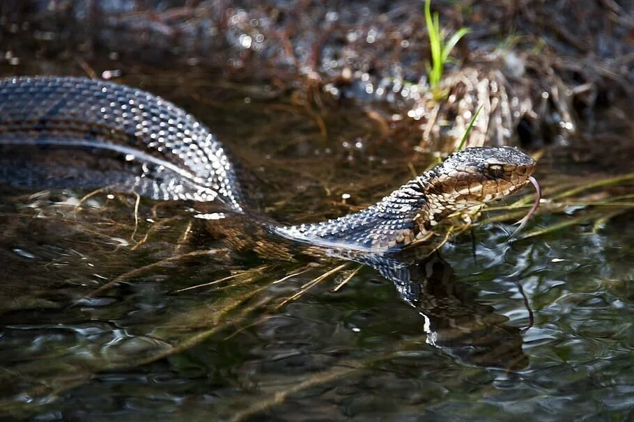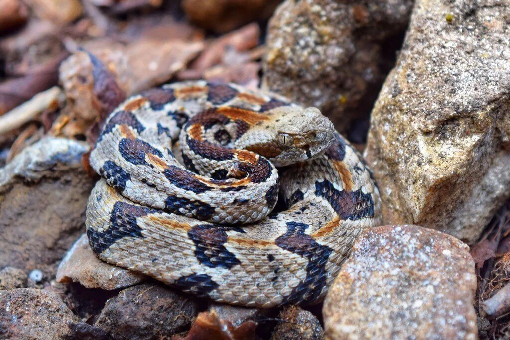 Virginia has 32 types of snakes, but only 3 of them are venomous! Our three venomous snakes are the copperhead, rattlesnake, and water moccasin. Generally, you can identify a venomous snake by looking for a pointy nose (instead of round) and a big head with skinny neck. While many people are afraid of snakes, snakes can be very helpful as they eat mice and other rodents who are in your garden, home, or campground. When you see a snake, it’s best to given them their space by walking around them and leaving them alone.